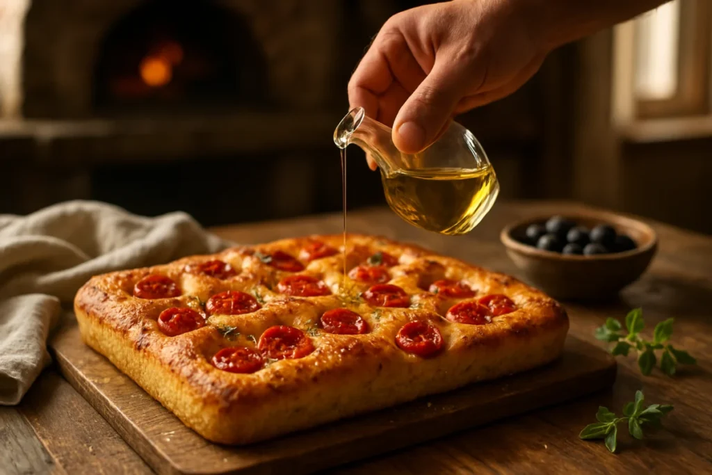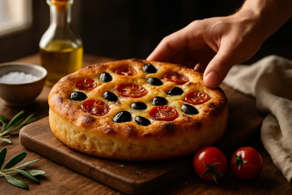 Scopri come preparare una focaccia barese alta e soffice in sole due ore con un unico impasto, ricca di sapore e semplicità.