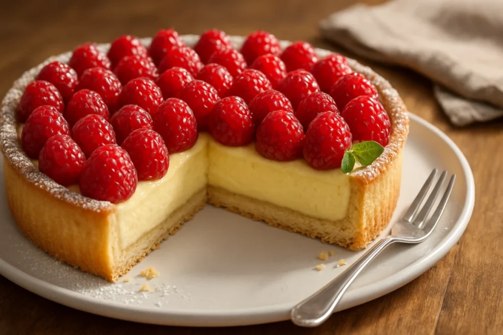 Scopri come preparare in anticipo una deliziosa crostata di lamponi con crema diplomatica, perfetta per festeggiare la Festa della Mamma.