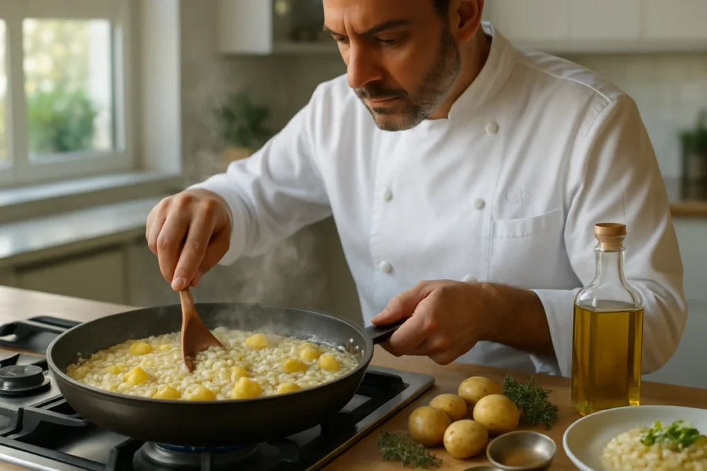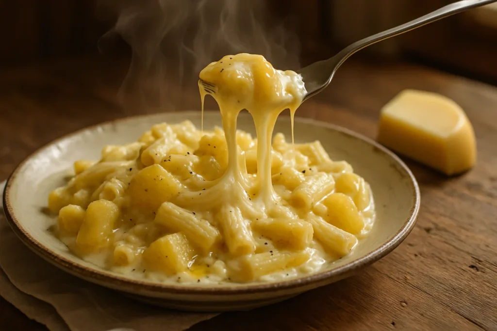 Scopri il segreto per una pasta e patate cremosa e avvolgente, senza panna, grazie al caciocavallo e a tecniche da chef.