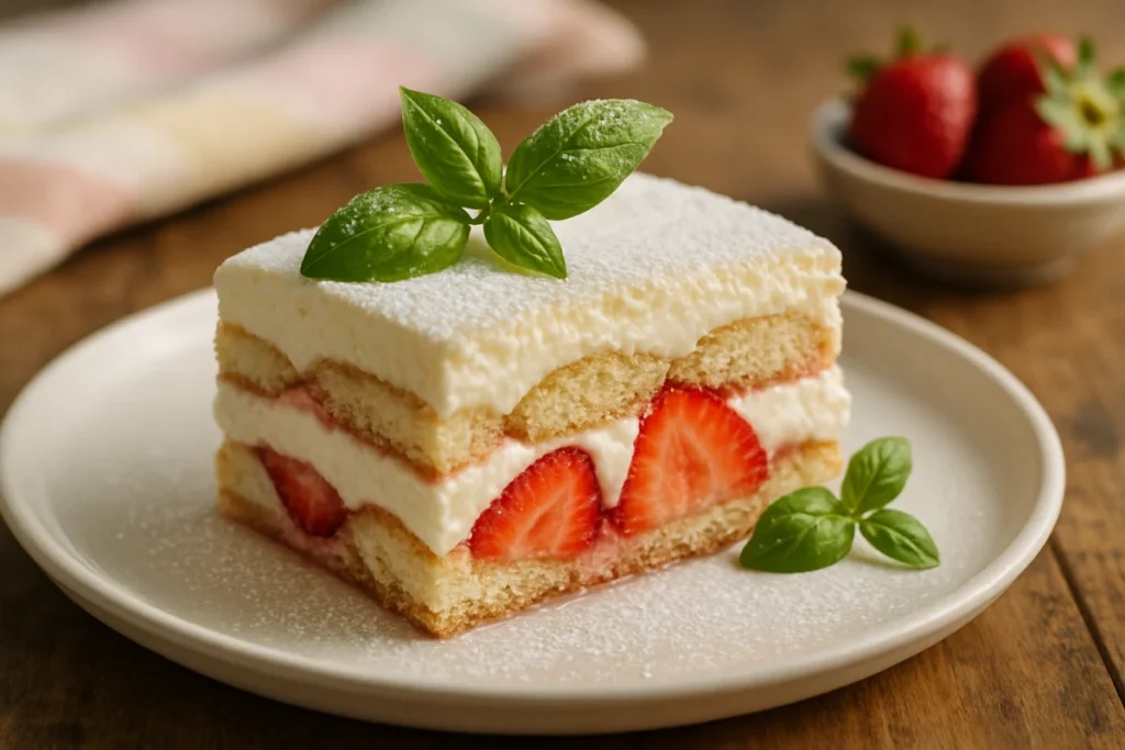 Scopri come preparare un delizioso tiramisù primaverile con fragole e basilico in soli 30 minuti, senza uova crude e ricco di freschezza.